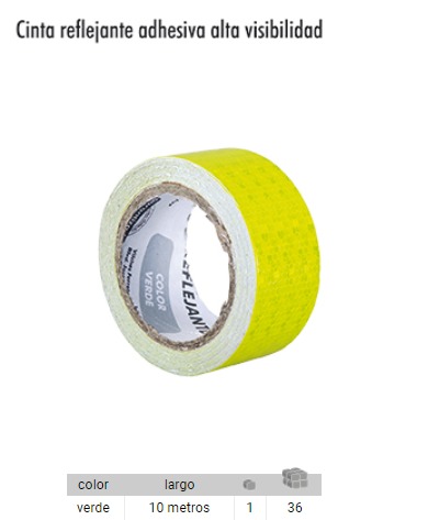 CINTA REFLEJANTE ADHERIBLE COLOR AMARILLO ALTA VISIBILIDAD · CADA ROLLO MIDE 5CM DE ANCHO POR 10 METROS DE LARGO. · METRO 22.00 + IVA.
