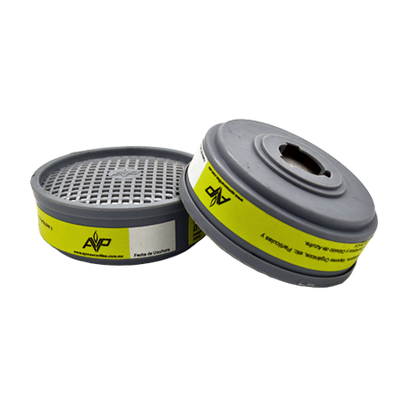Cartucho contra algunos vapores orgánicos, cloro, cloruro de hidrogeno, sulfuro de hidrogeno (escape), dióxidodeazufre, etc. Entrada bayoneta. Par marca AP mascarillas