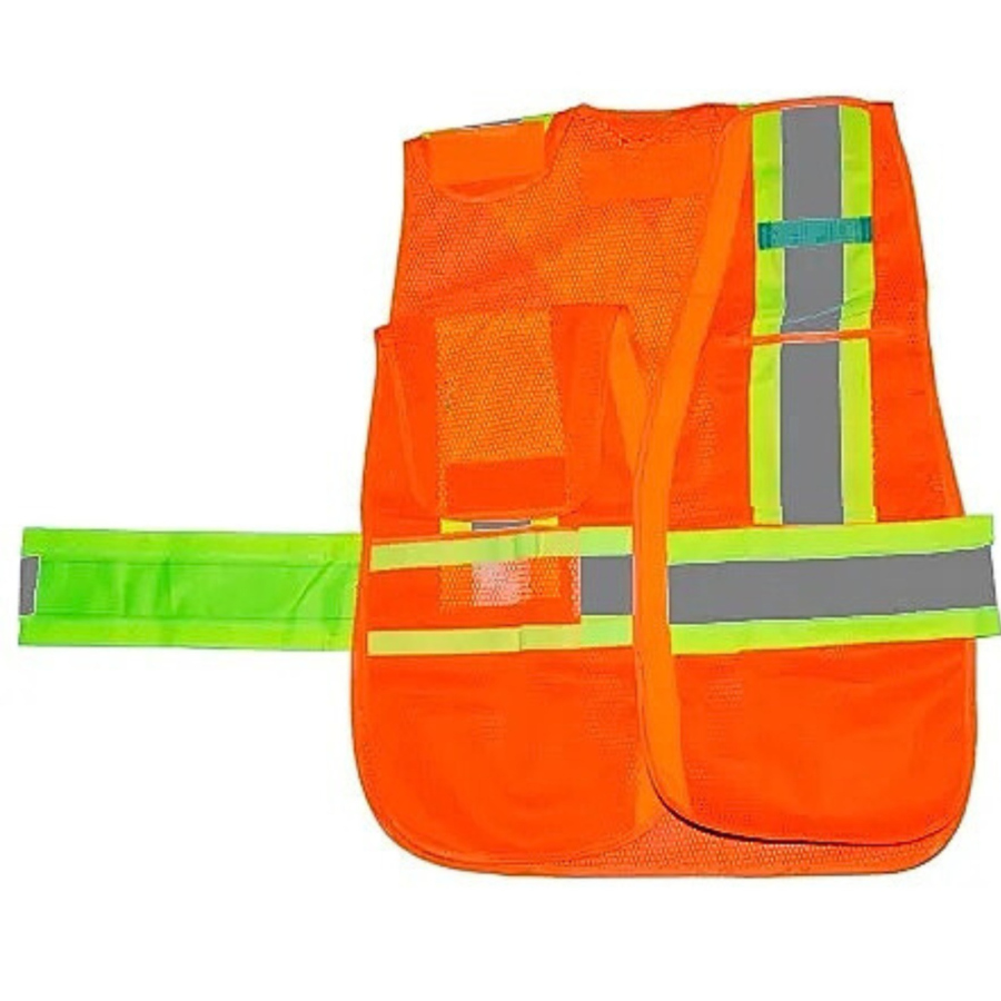 Chaleco Súper Visibilidad Desmontable Clase II. Mod. SR1034. Unitalla, Color Naranja, Amarillo, Verde o Azul. Cuenta con tiras reflejantes con ajuste velcro en hombros y costados ideal para disminuir riesgo de quedar atrapado en mecanismos en movimiento. Cuenta con práctica ranura en espalda para líneas de vida o arnés. Cuenta con 4 bolsillos frontales. Con reflejantes bicolor. Fabricado en malla 100% poliéster tipo jersey. Cierre frontal en velcro.