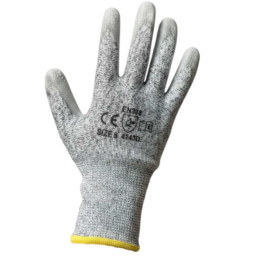 Guante resistente a cortes nivel 5 (antes) (ahora nivel ANSI CUT 4 y nivel D) Mod. G-ATCResistente al corte con recubrimiento de poliuretano en palma Tallas: CH, M, G, XG.