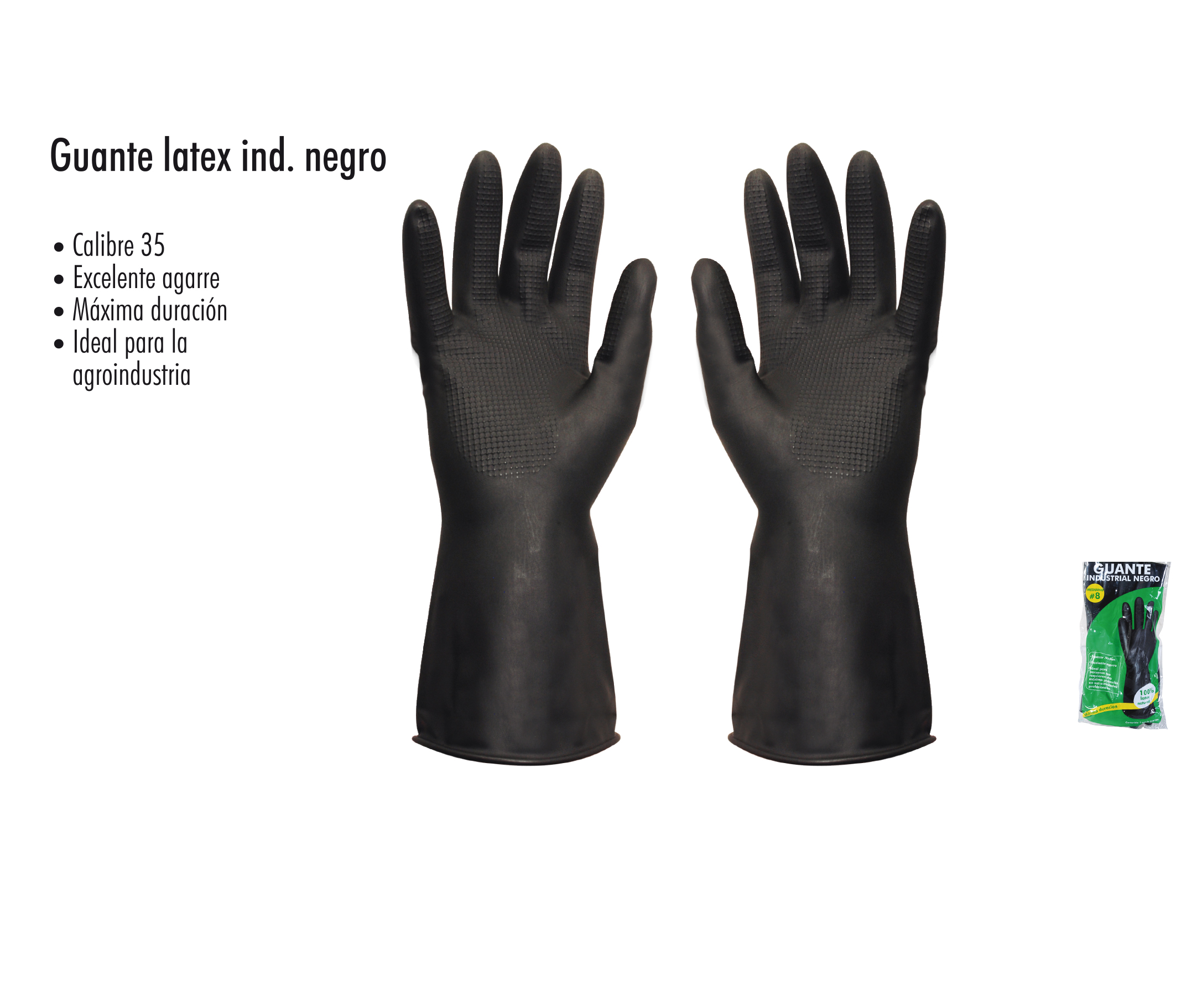 Guante látex industrial negro cal. 35 mm, largo 30 cm. Tallas: #8, #9.