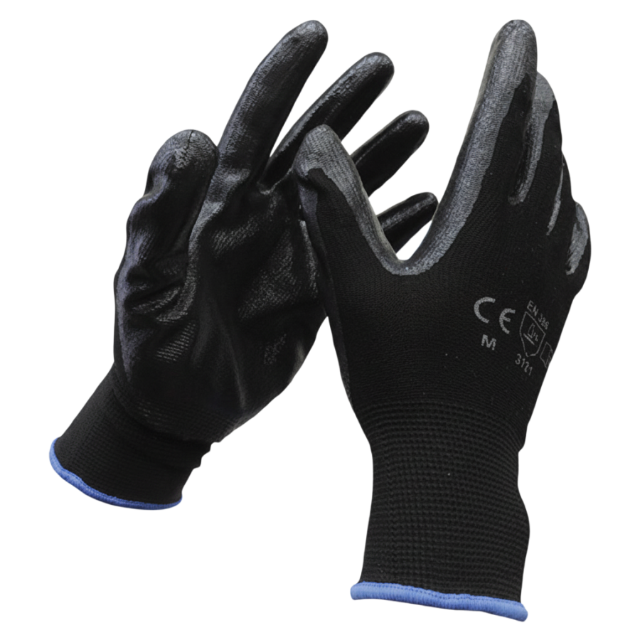 Guante nylon negro c/palma nitrilo negro sólido. Tallas: 6, 7, 8, 9. Marca TAC